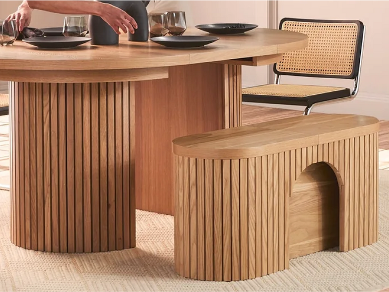 Nova’s sideboard and bench keeps all the table panels quietly tucked away.