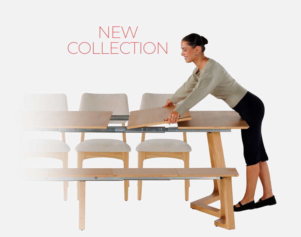 Transformer Dining Sets center around our iconic extendable dining table, paired with matching chairs or benches to create a complete dining room setup. Each set expands in seconds, shifting effortlessly from everyday meals to full-house gatherings. One dining table adapts to every occasion, giving you the flexibility to host without ever needing more space.