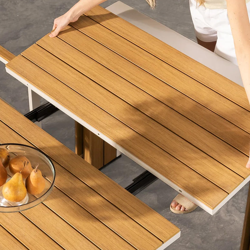 Transformer Outdoor Dining Sets bring extendable dining outdoors with weather-resistant materials designed for patios and terraces. Each set includes an extendable outdoor dining table paired with durable outdoor chairs or benches. Your outdoor space stays ready for everything from casual meals to full gatherings under the open sky.