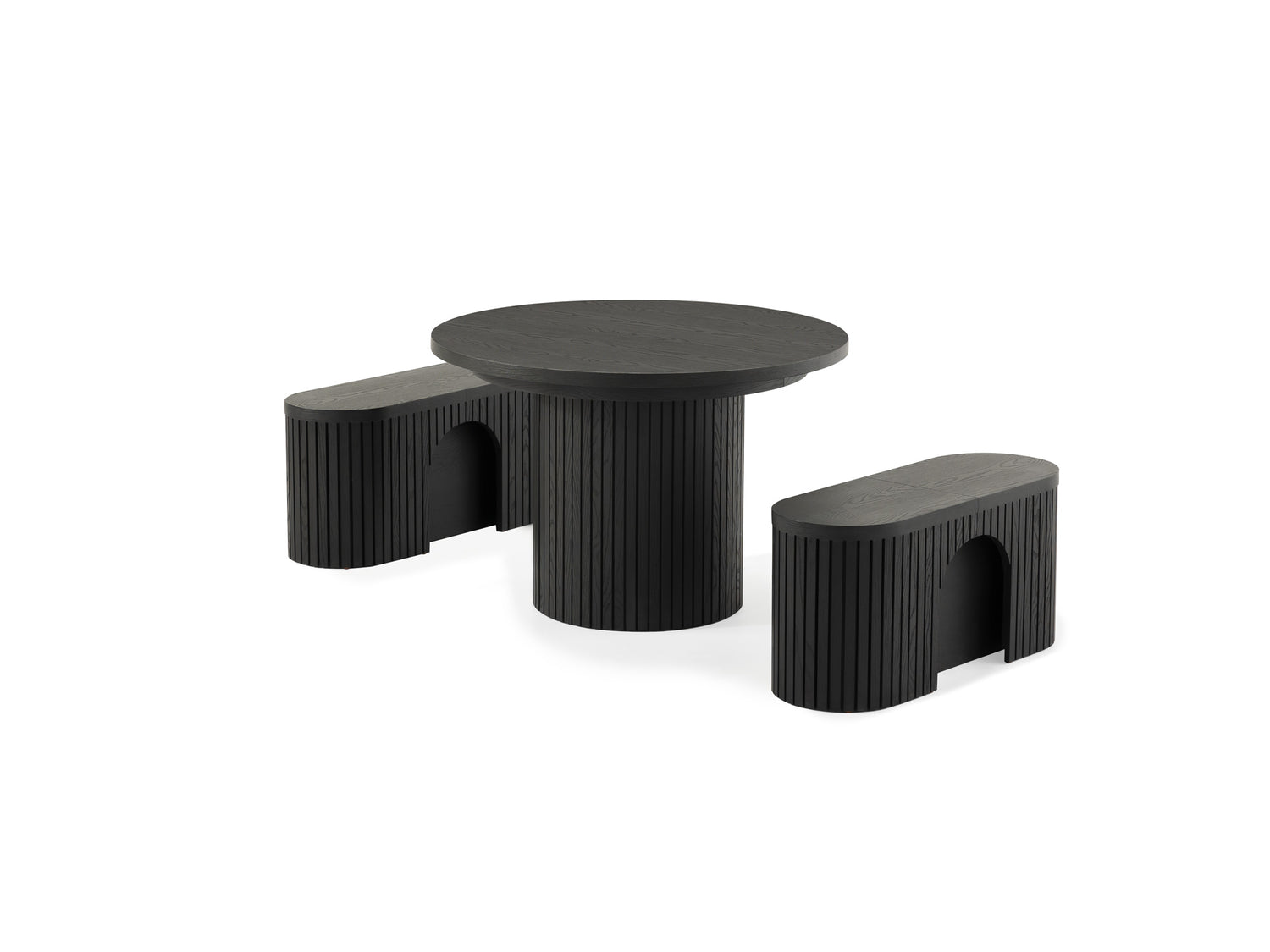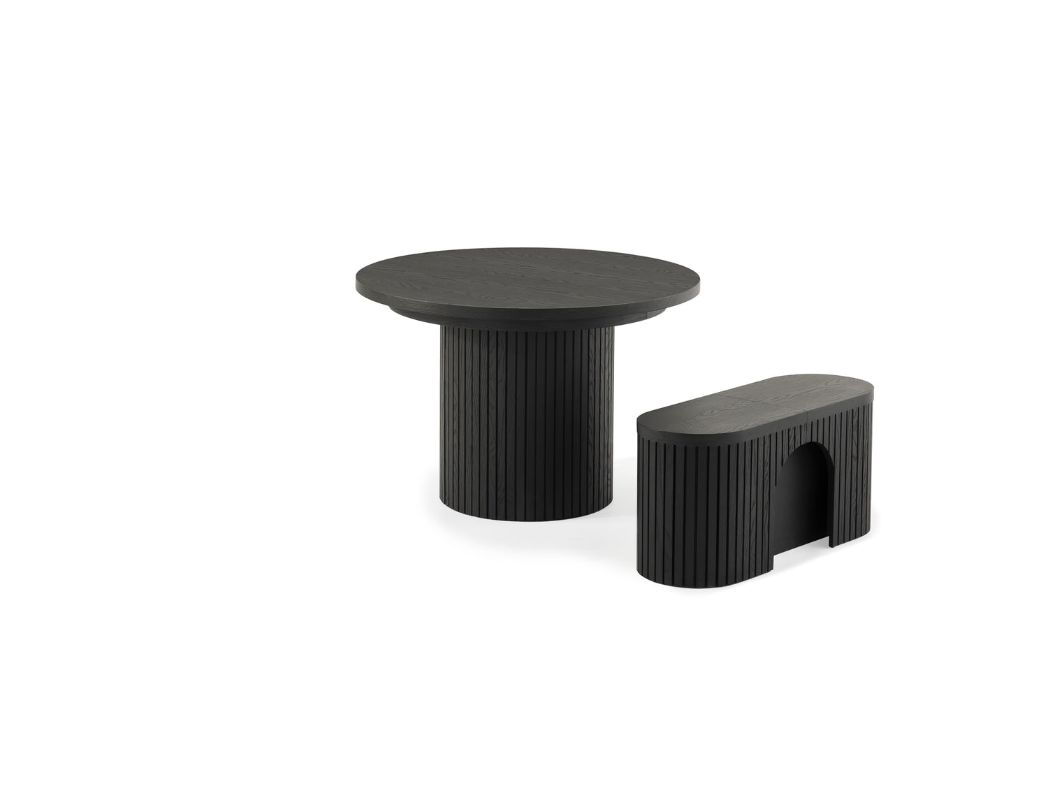 Crafted from 100% solid, responsibly sourced hardwood, each modern round dining table offers the timeless charm of natural materials with the strength to last from generation to generation. Pair your Round Dining Table with a Curved Dining Bench or Transformer Round Chair to complete your dining experience in style.