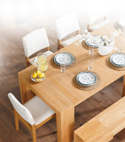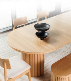 Available in four configurations, the Transformer Practical Dining Set, The Transformer Host Dining Set, The Transformer Gathering Dining Set, and the Transformer Family Dining Set, each includes a solid wood dining table that adjusts to seat up to 12 people. Pair it with our dining table bench or Transformer Dining Chairs for a complete, modern setup that fits your style and space.