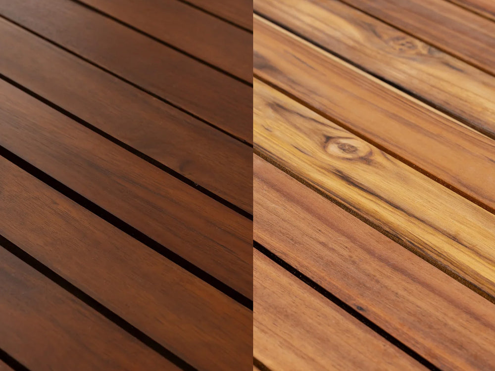Maintenance: To maintain the look and longevity of your teak wood, periodically apply teak oil to rejuvenate the wood and protect it from the elements. Follow the manufacturer's instructions for application and always perform a spot test to ensure no discoloration occurs.