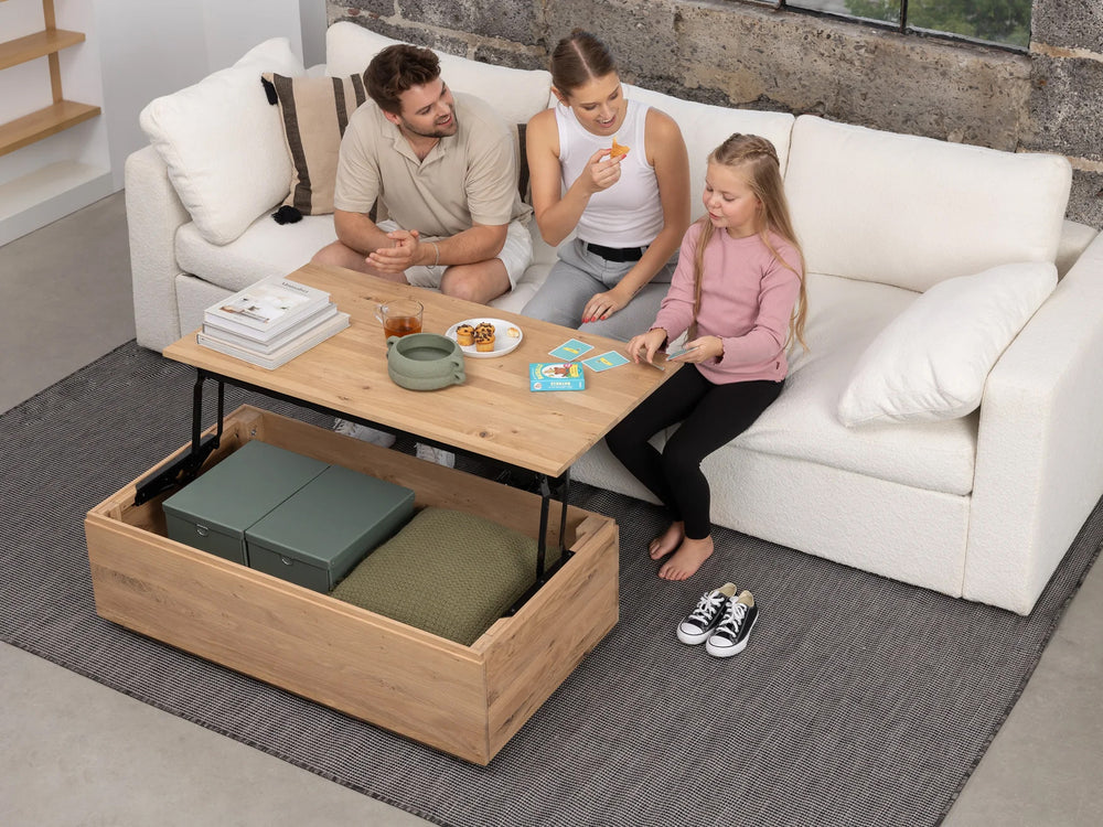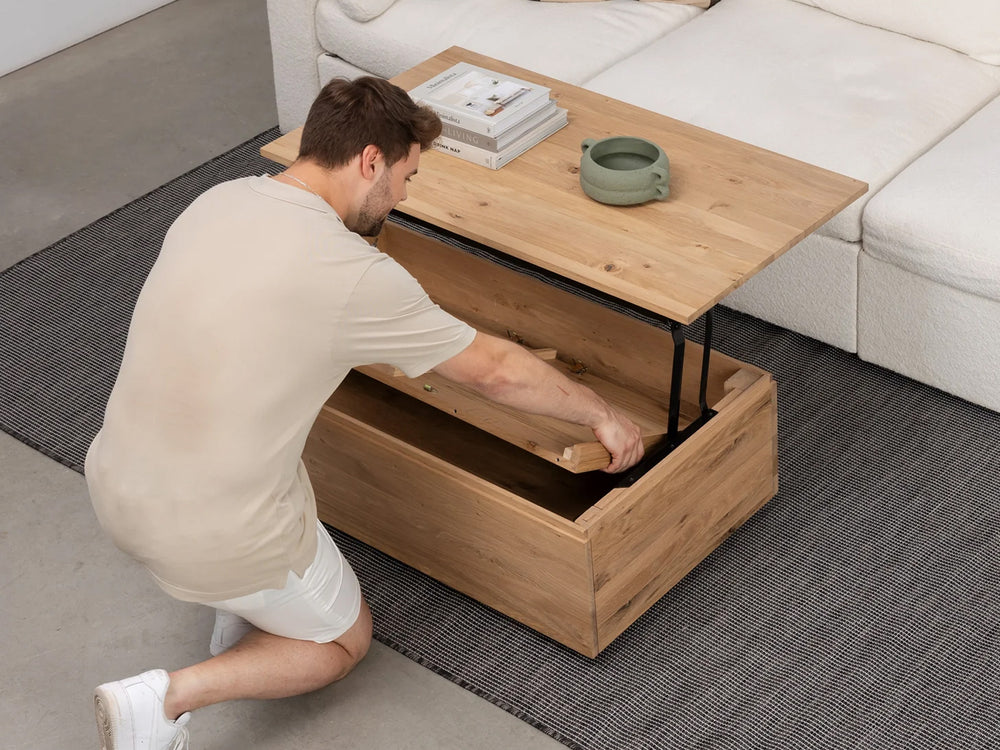 Doubles as a stylish lift-top coffee table and hidden panel storage solution for the Transformer Table.